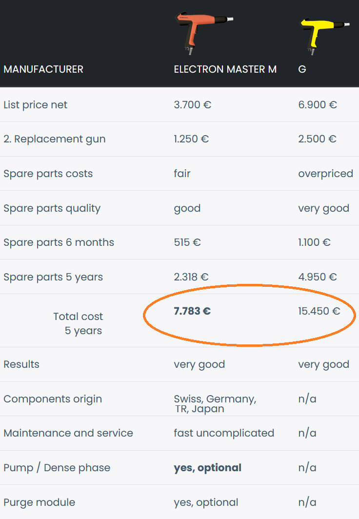 Powder coating guns test
